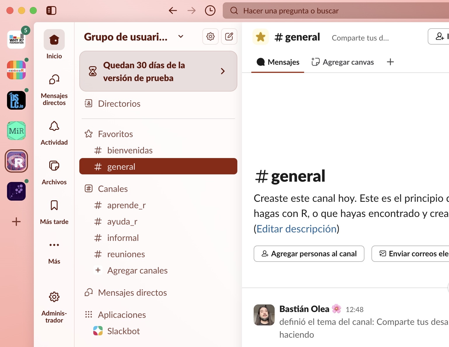 Creamos un grupo de Slack para que podamos mantener el contacto entre reuniones, conversar y conocernos mejor. Únete!